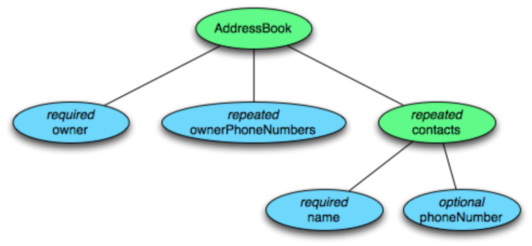 message AddressBook {required string owner;repeated string ownerPhoneNumbers;repeated group contacts {required string name;optional string phoneNumber;}}