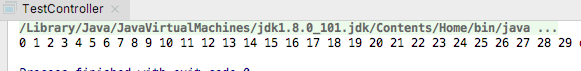 public class TestController {public static void main(String[] args){Random rand=new Random(47);Set intset=new HashSet();for (int i=0;i<10000;i++){intset.add(rand.nextInt(30));}Iterator iterator=intset.iterator();while (iterator.hasNext()){System.out.print(iterator.next()+" ");}}