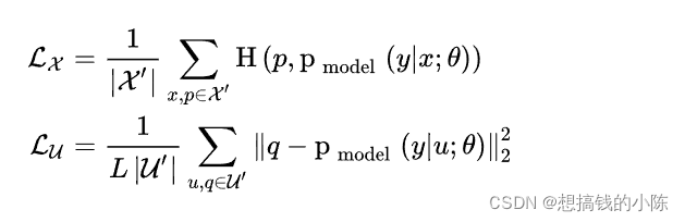 . 对增广后的标记数据 x ,和无标记增广数据u 分别计算损失项,