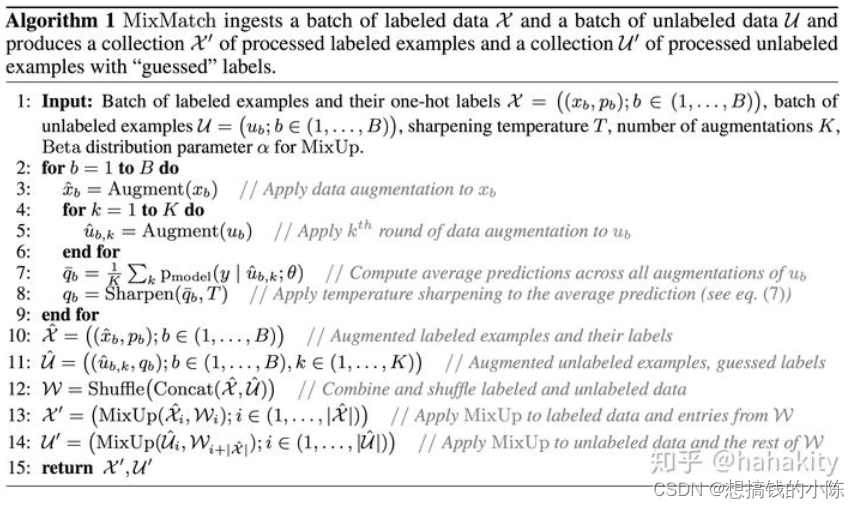 其中 T, K, 是超参数,后面会介绍。MixMatch 数据增广算法如下,