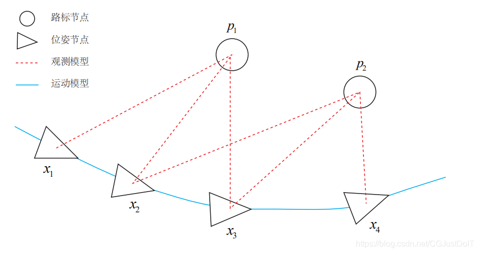 - 红色与蓝色的线,都是边,描述相连顶点优化变量关系,也就是误差项;