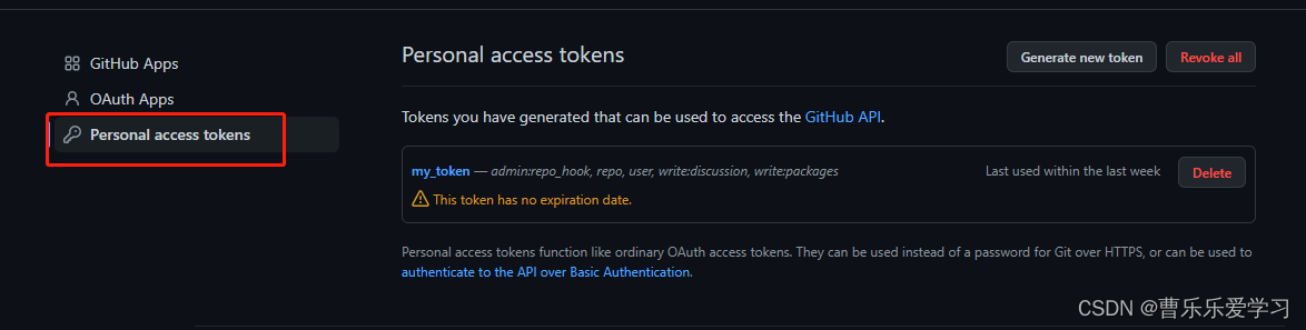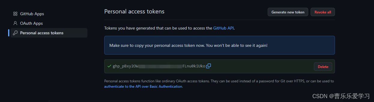 注意:提交的代码中,不能以任何形式保存这个令牌,哪怕写在git commit也不行,系统检测到,会直接把令牌注销的!!!
