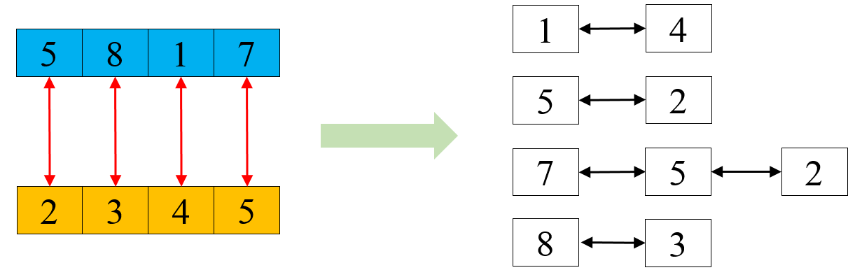 - 重复基因检测根据交换的两组基因建立一个映射关系(映射表),如图所示,以7-5-2这一映射关系为例,可以看到第二步结果中子代1存在两个基因7,这时将其通过映射关系转变为基因2,以此类推至没有冲突为止。最后所有冲突的基因都会经过映射,保证形成的新一对子代基因无冲突。