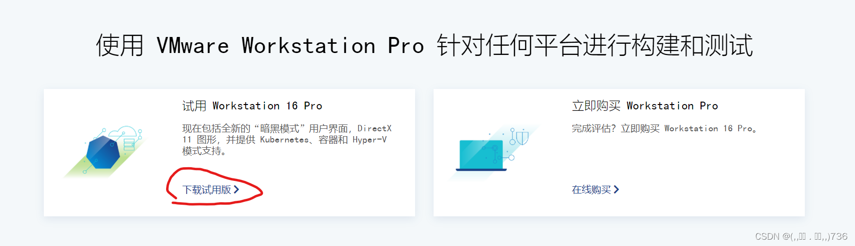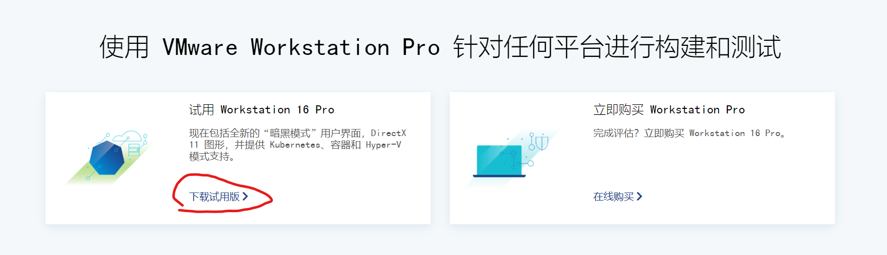 1.1 在官网下载VMware安装包。https://www.vmware.com/cn/products/workstation-pro.html