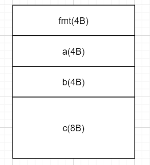 要获取fmt后面的第一个参数, 那就得知道fmt占用了多少字节, 这点可以通过sizeof获取, 万一是char型呢, 前面看到char型参数, 在高位填充了0使它填满32位, 因为这是32位平台. 因此需要考虑参数大小不是4字节的整倍数的情况.
