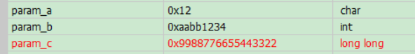 // my_va_list vlist;my_va_start(vlist, fmt);static char param_a;param_a = my_va_arg(vlist, char); // 第1个传入的参数是char型static int param_b;param_b = my_va_arg(vlist, int); // 第2个传入的参数是int型static long long param_c;param_c = my_va_arg(vlist, long long); // 第3个传入的参数是long long型}