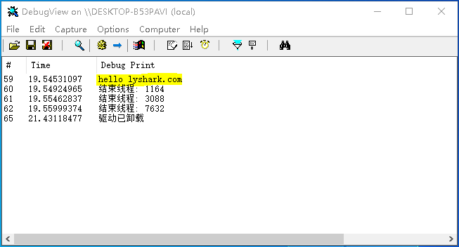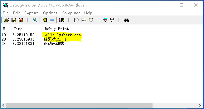 {DbgPrint("hello lyshark.com \n");BOOLEAN Retn;Retn = KillProcess("lyshark.exe");DbgPrint("结束状态: %d \n", Retn);Driver->DriverUnload = UnDriver;return STATUS_SUCCESS;