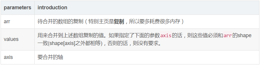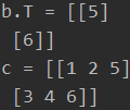 c = np.append(a, b, axis=1) # 结果合并为5列