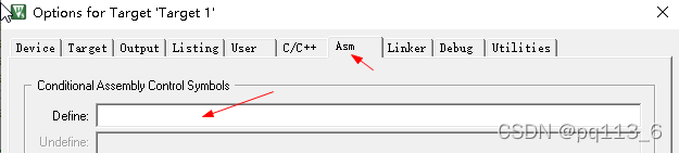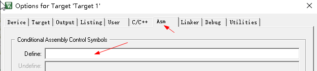 4. 汇编程序对应的宏定义设置是在ASM子项卡里面
