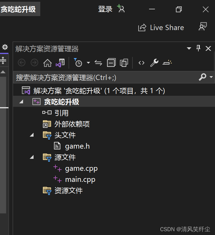 随后创建一个game.h的头文件,game.cpp的源文件,再创建一个main.cpp的源文件.如图: