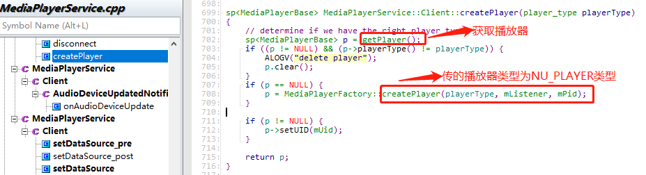 - 获取播放器,setDataSource的时候我们选取的播放器为NuPlayer