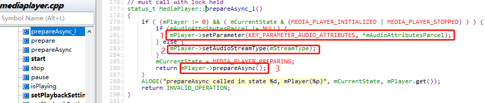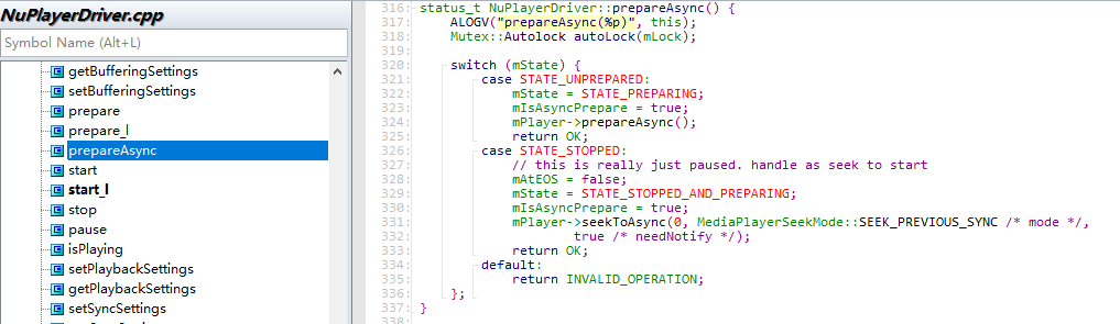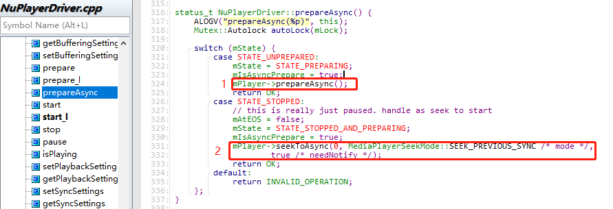 - 调用IMediaPlayer的prepareAsync方法,具体实现在MediaPlayerService中