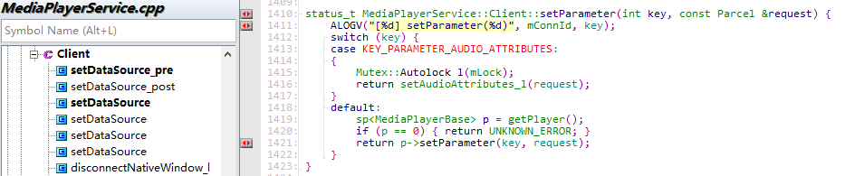- 调用IMediaPlayer的setParameter方法,具体实现在MediaPlayerService中