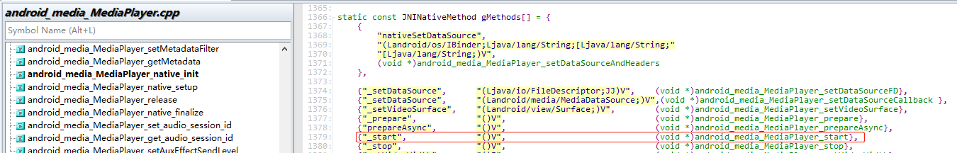 - _start在JNI中注册为android_media_MediaPlayer_start