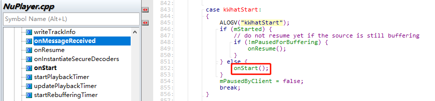 1.调用播放器的start方法,前面我们获取到的播放器为NuPlayer,所以这里调用的是NuPlayer的start方法