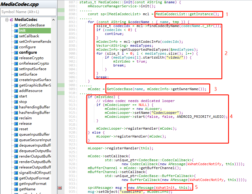 - 若为video codec,则需要为其创建一个专门的ALooper,名为mCodecLooper;若为audio则与MediaCodec使用同一个ALooper,名为mLooper。