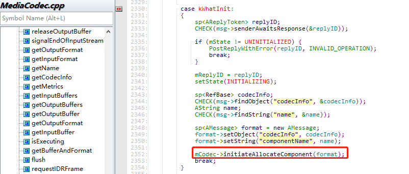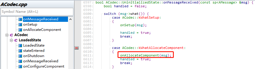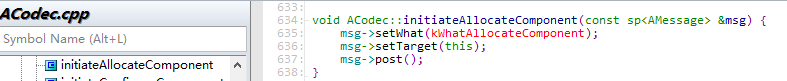 - 在ACodec::initiateAllocateComponent中又通过发送消息kWhatAllocateComponent进行调用