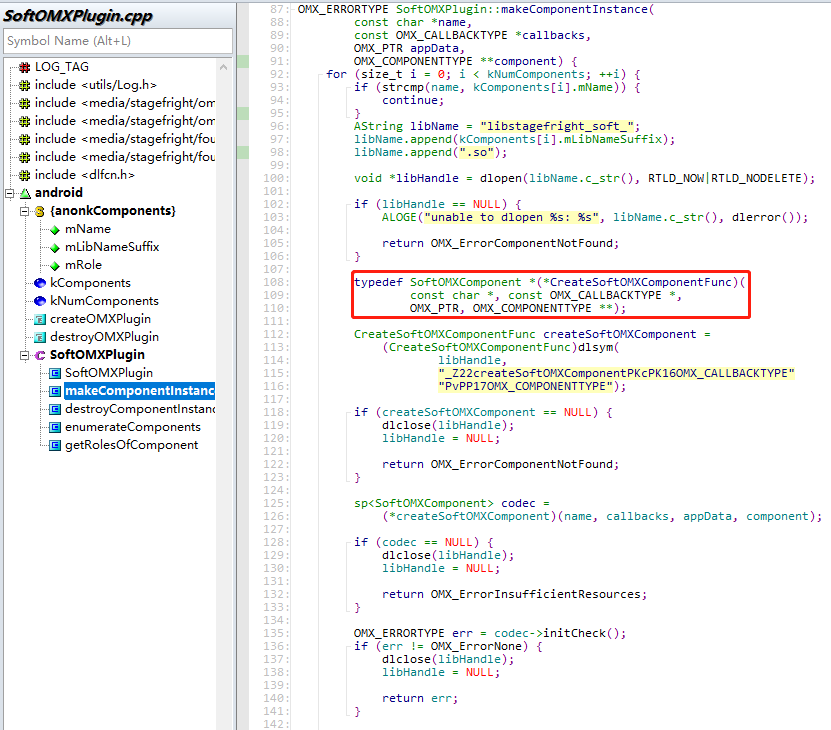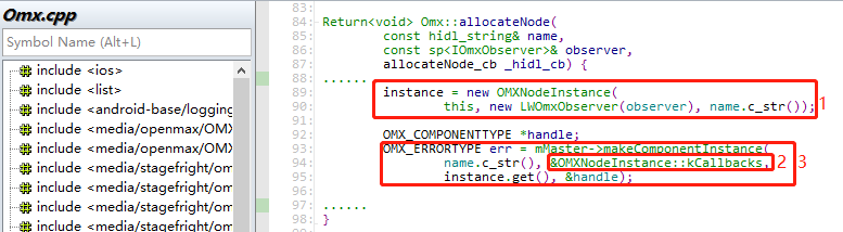 - 调用OMXMaster::makeComponentInstance(实际会调用到组件继承自OMXPluginBase的相关方法)来创建解码实体组件(生成OMX_COMPONENTTYPE对象)