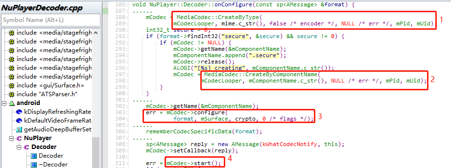 - 调用MediaCodec::CreateByType或者MediaCodec::CreateByComponentName