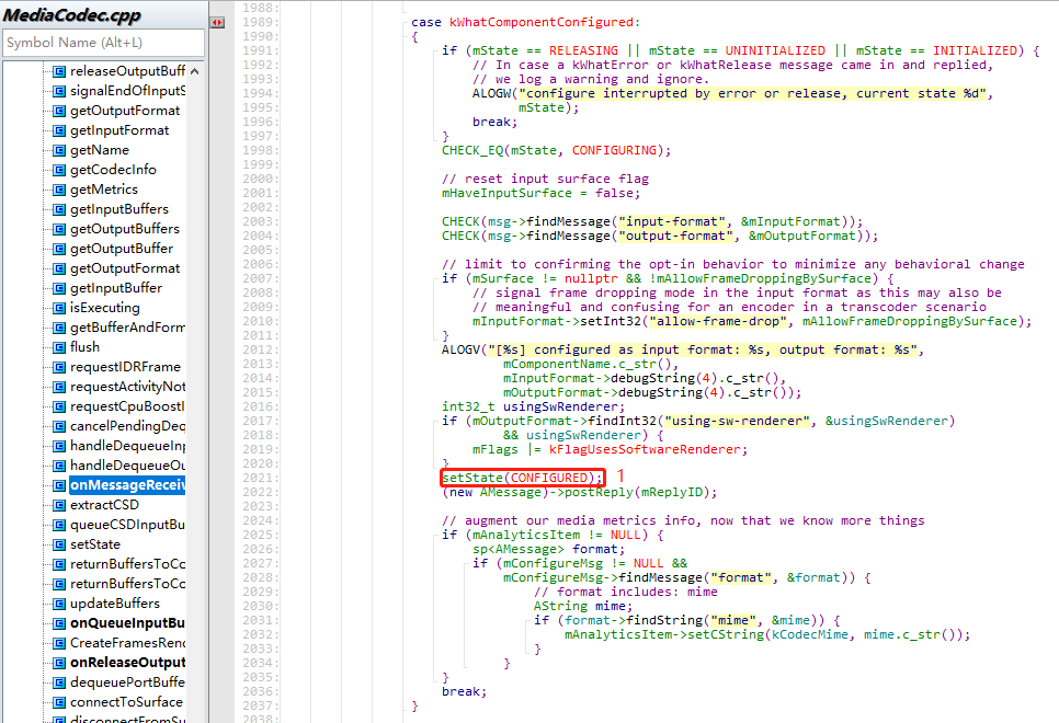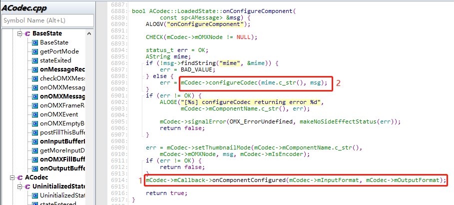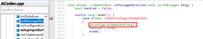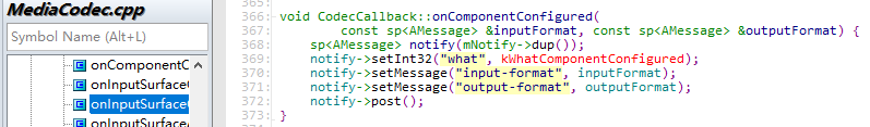 - 对IOMX进行一系列的设置以及配置操作,通过Binder通信就对OMXNodeInstance进行相应的设置和配置操作,最终就对OMX组件进行了相应的设置和配置。然后向MediaCodec发送kWhatComponentConfigured消息,在消息处理中将MediaCodec状态设为CONFIGURED