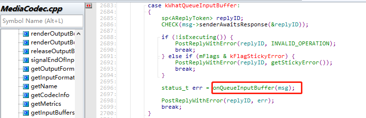 - 调用NuPlayer::Decoder::onInputBufferFetched执行内存拷贝将buffer拷贝到编解码器,然后又调用了MediaCodec::queueInputBuffer将buffer提交给解码器,其会产生消息kWhatQueueInputBuffer,消息处理中调用MediaCodec::onQueueInputBuffer