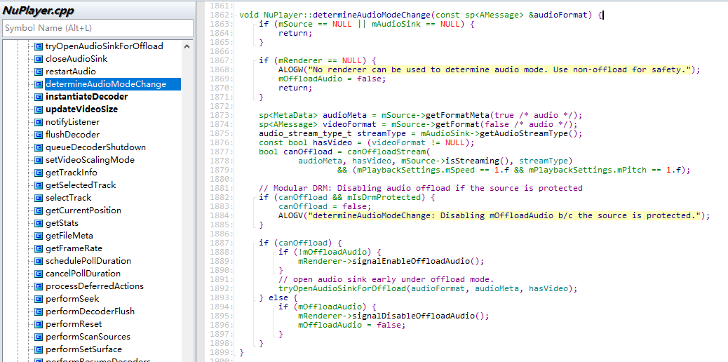 如上会完成两件重要的事情,一个是调用determineAudioModeChange完成AudioTrack的创建,另外就是创建音频的decoder,我们当前只关注AudioTrack的创建
