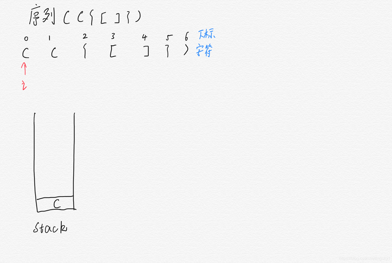 S3:如果当前遍历到右括号,则出栈一个元素,看其是否与当前的右括号组成一对,如果不是,则匹配失败。或者在出栈过程中发生异常(从空栈中出栈),也匹配失败