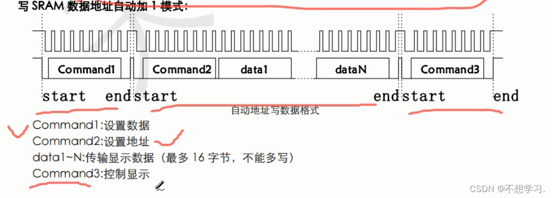 3.通讯协议层,有三个,设置数据指令,设置地址,控制显示。