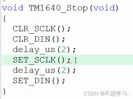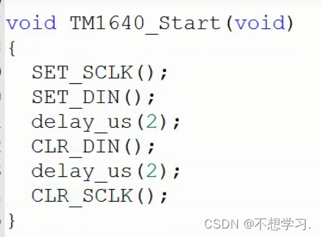 一开始,时钟线和数据线都是高电平,延时两微秒后,数据线先变为低电平,再延时两位秒后,时钟线也变为低电平。刚好对应上面的时序图。