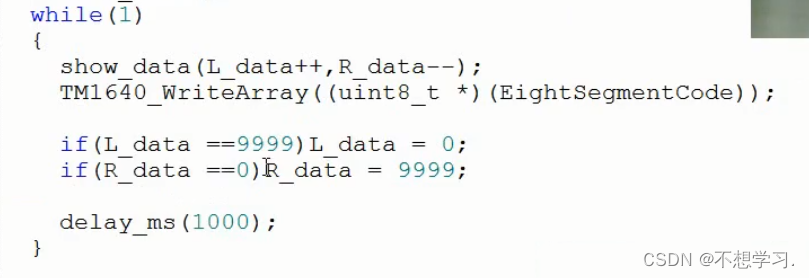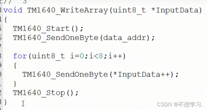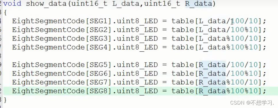 上面那个图中指针*InputData是指向数组的,八个数码管数据是存放在此数组中的。所以需要将数据拆分为八位,分别存放到数组中,数组当然也是八位。