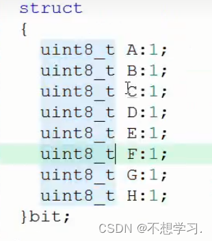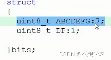 然后定义一个联合体,有三部分,其中后面的“:1”或者“:7“是位域,代表这个数值占了几位:
