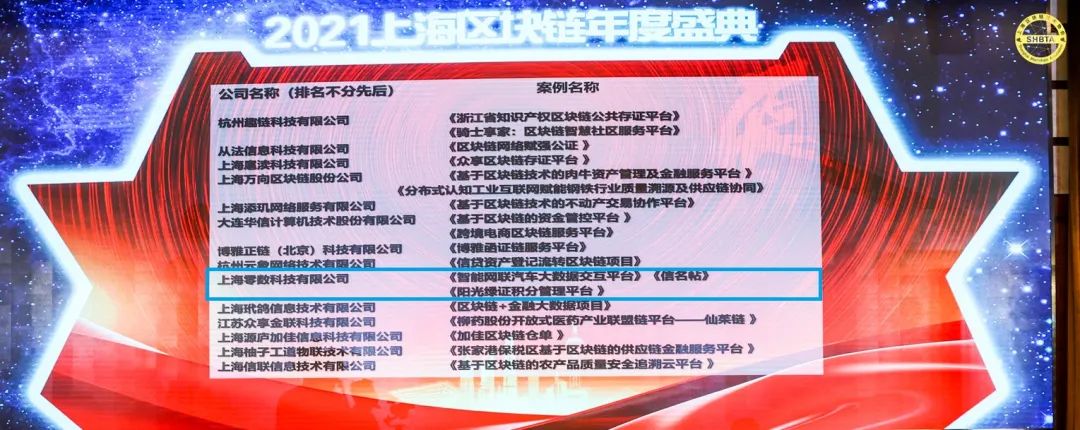 ①携手中国汽车工业协会打造的“智能网联汽车大数据交互平台”,入围“金融+区块链场景”; ②携手阳光电源打造的“阳光绿证积分管理平台”,入围“碳交易、碳中和+区块链场景”。③携手公安三所及中智关爱通打造的 “信名帖”,入围“数据安全与数据共享+区块链场景”——也是业内对于零数科技在区块链创新技术研究在应用方面成果的的极大肯定。