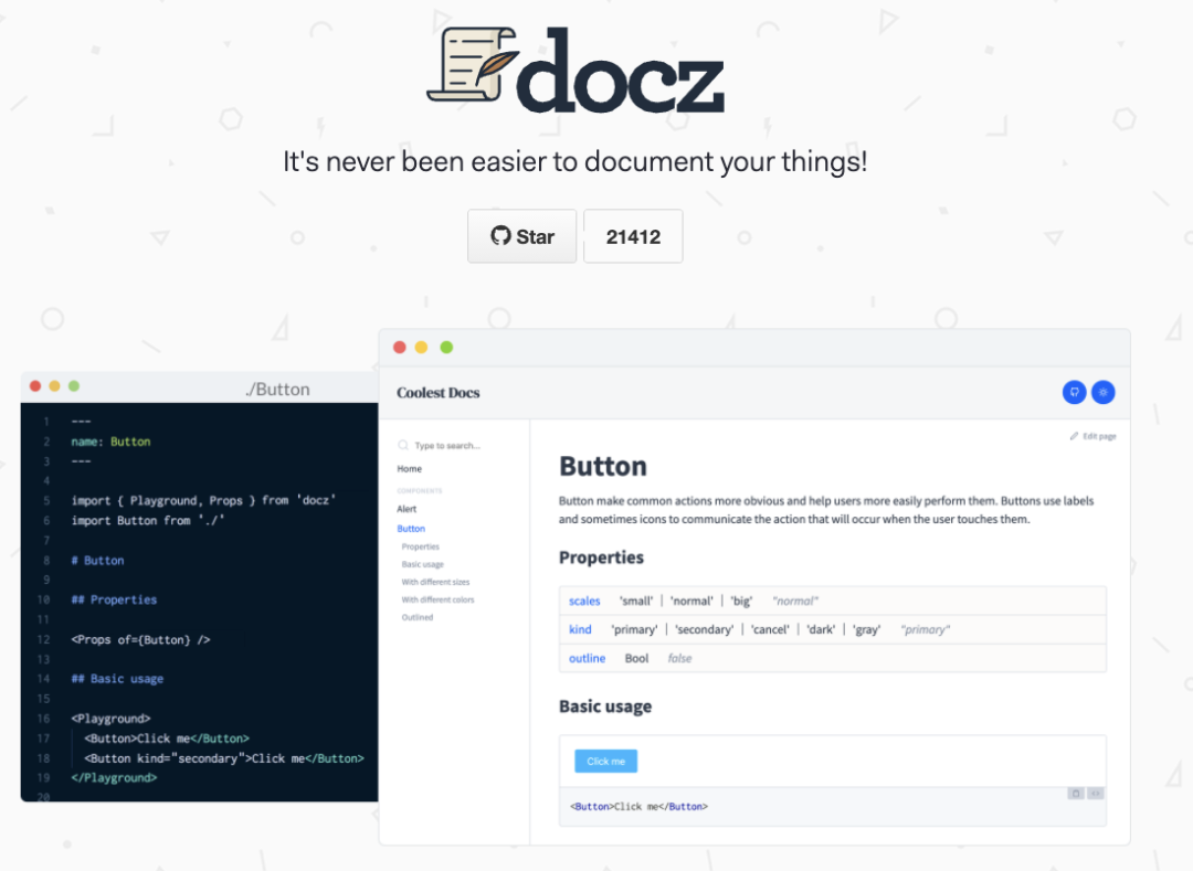 使用 docz 我们可以用来方便的编写以及发布文档,同时提供漂亮友好的交互,可以快速的制作一个产品级的站点,使用了 mdx 文件(还是markdown),同时可以方便的集成到自己的 web 项目中。