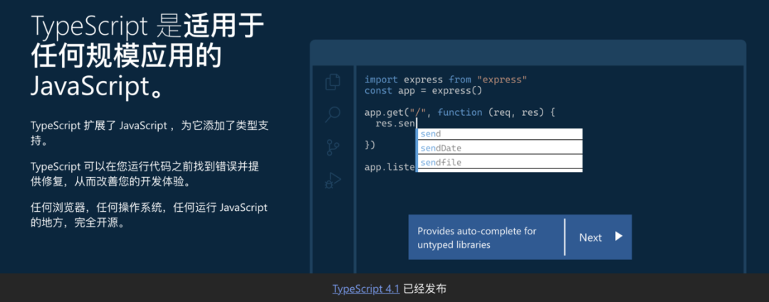 赢得了转译者与竞争对手 Flow 的战斗,几乎成为前端和后端开发的标准。