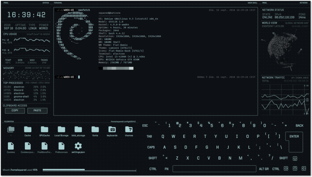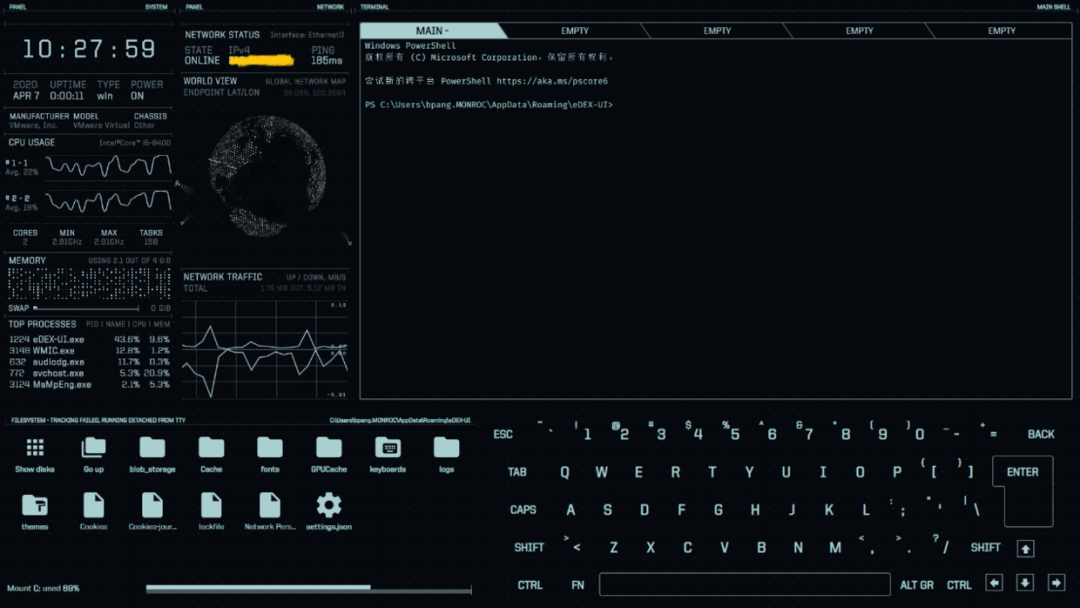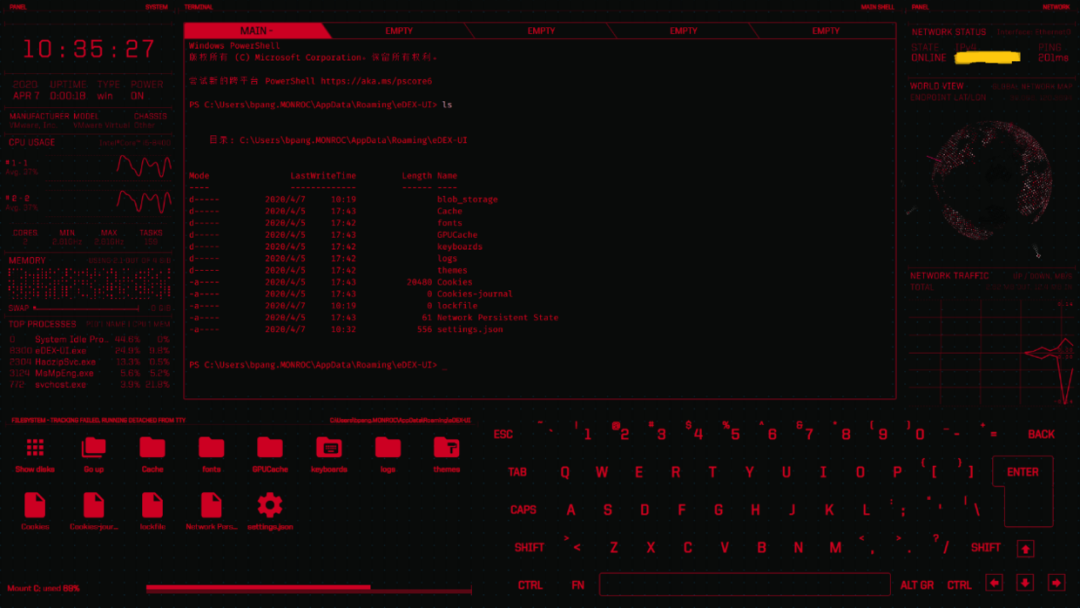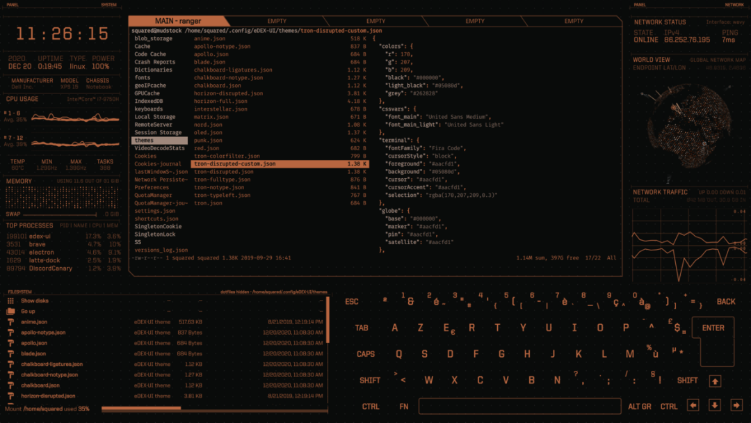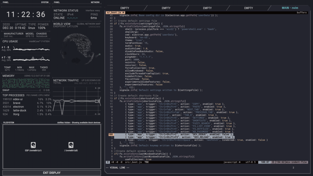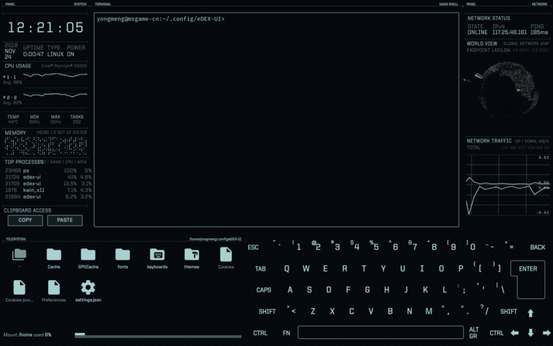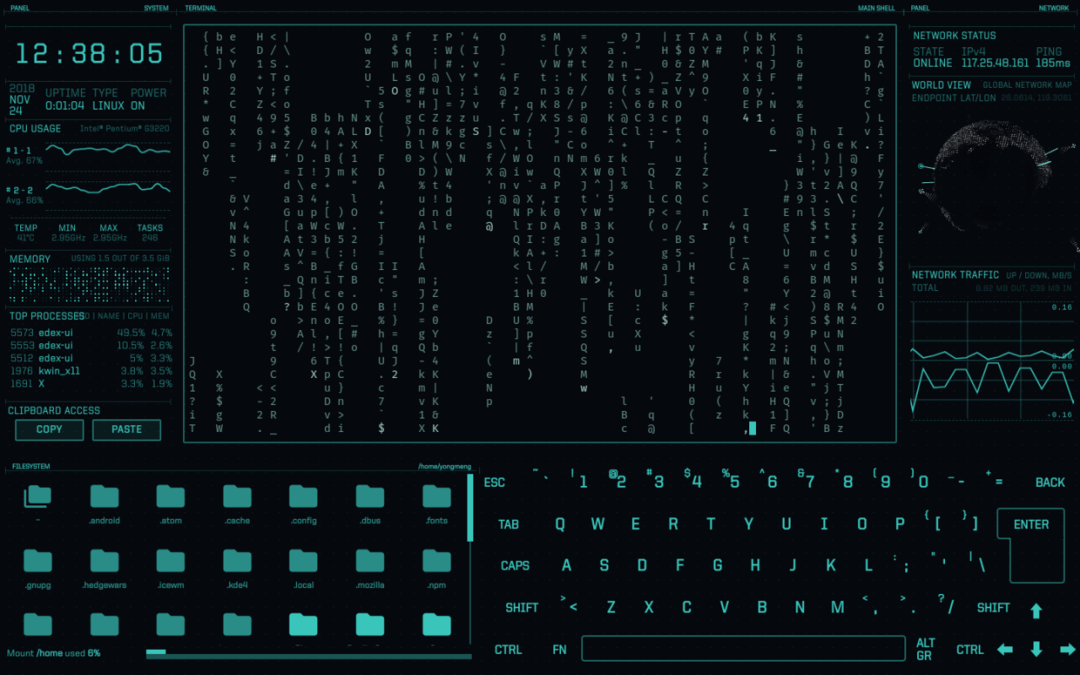 一款比较火的开源软件 ——edex-ui,它深受 DEX-UI 和 TRON Legacy 电影效果的启发,是一个类似于科幻电脑界面的全屏桌面应用程序。