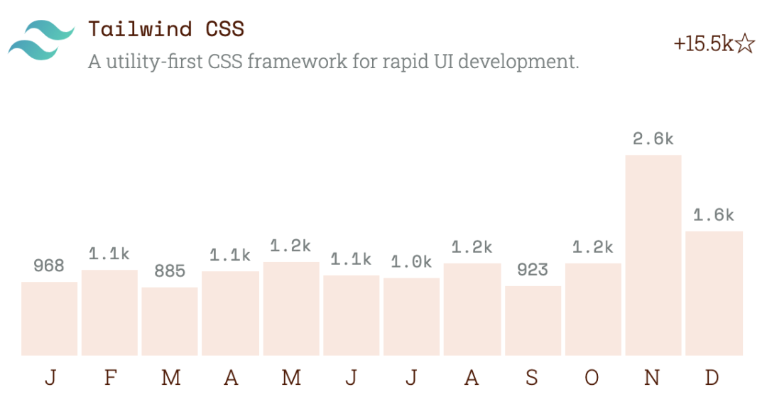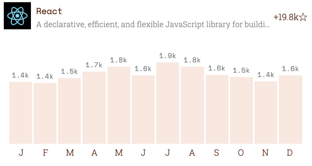 在 2020 年里猛增 174K Star!可见其流行程度!