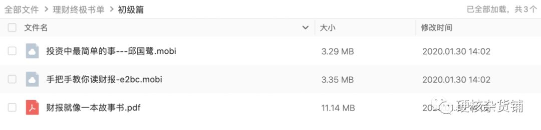 关注公众号【硬核杂货铺】,在后台回复关键字:理财,即可获得本文列出的全部理财电子书 pdf 版,回复关键字:英语 即可获得英语资源。
