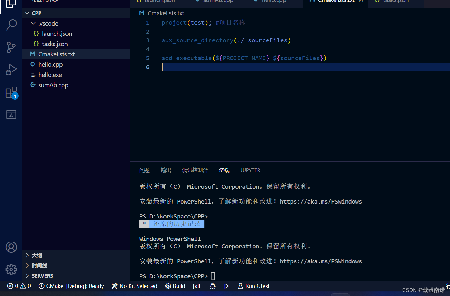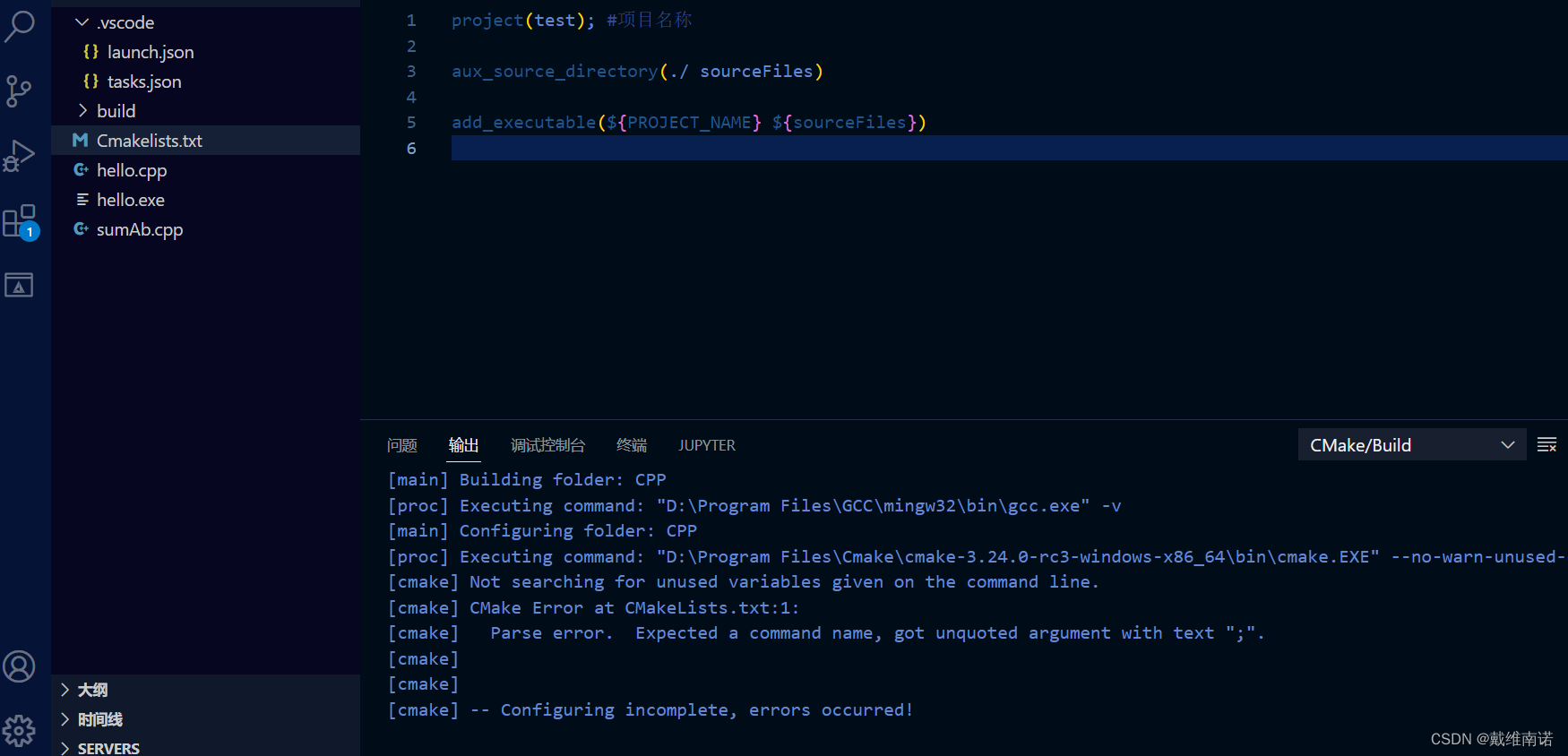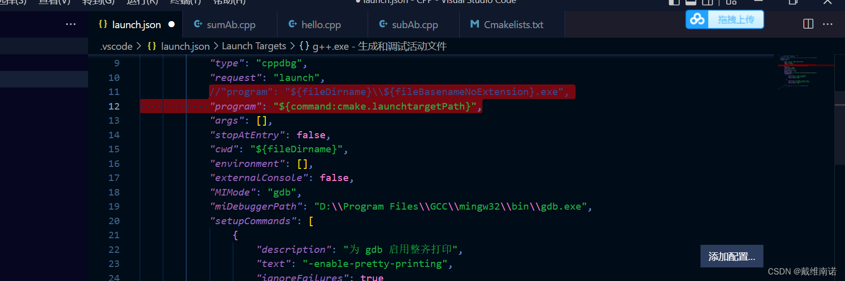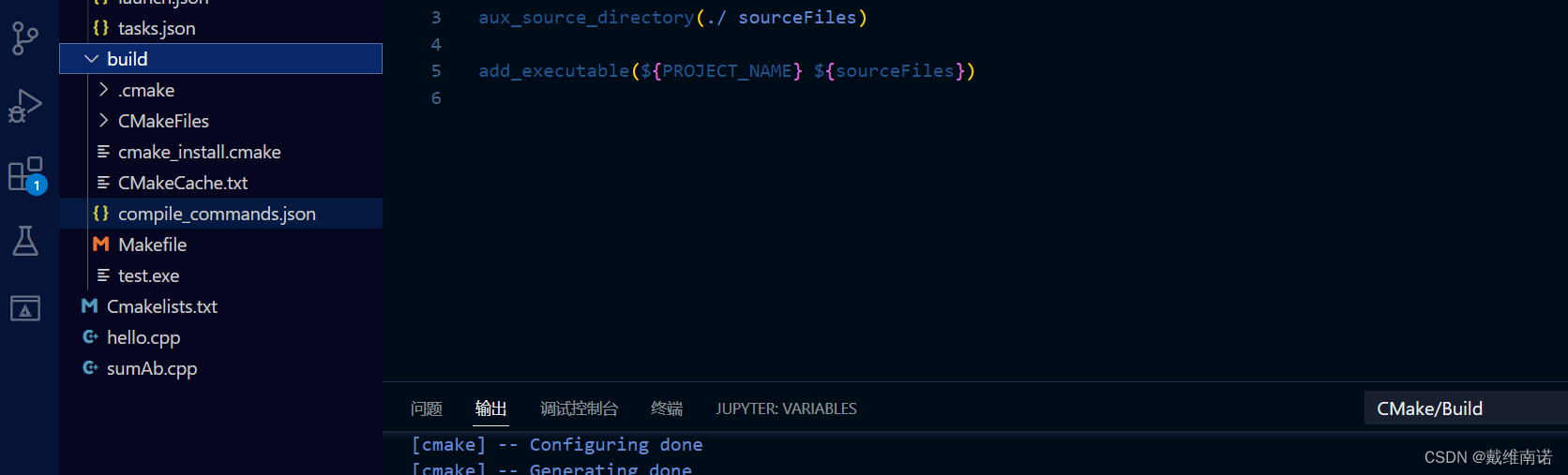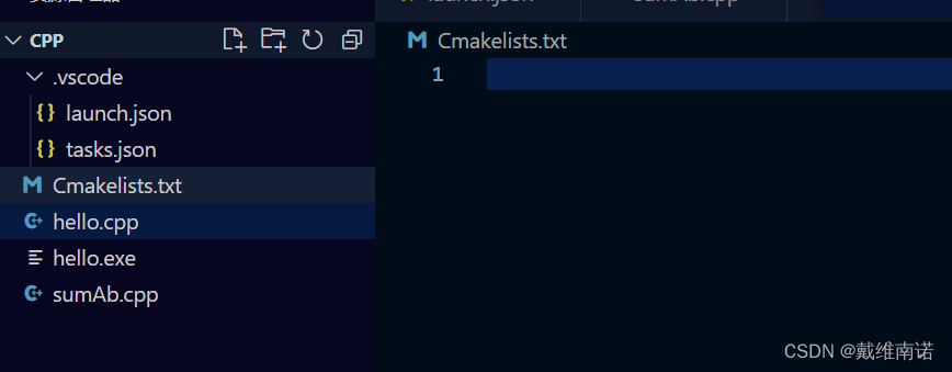 但这种方法比较麻烦,因为如果我们再添加文件,就需要再tasks.json中在配置,所以,我们可以借助一个工具:Cmake.