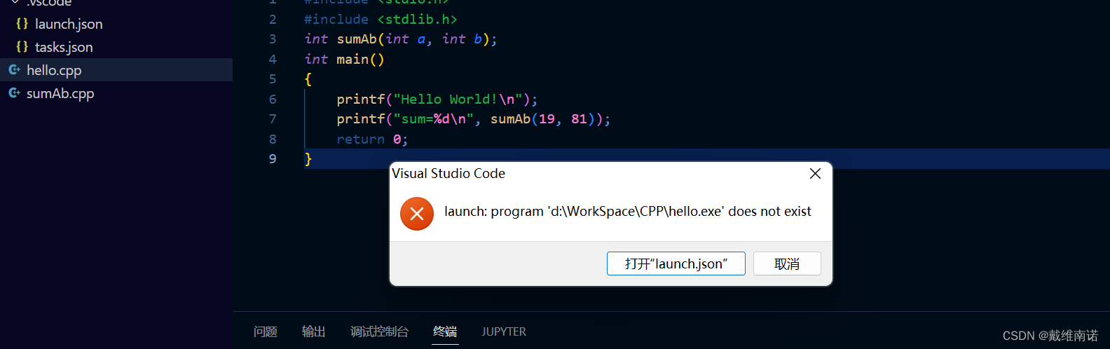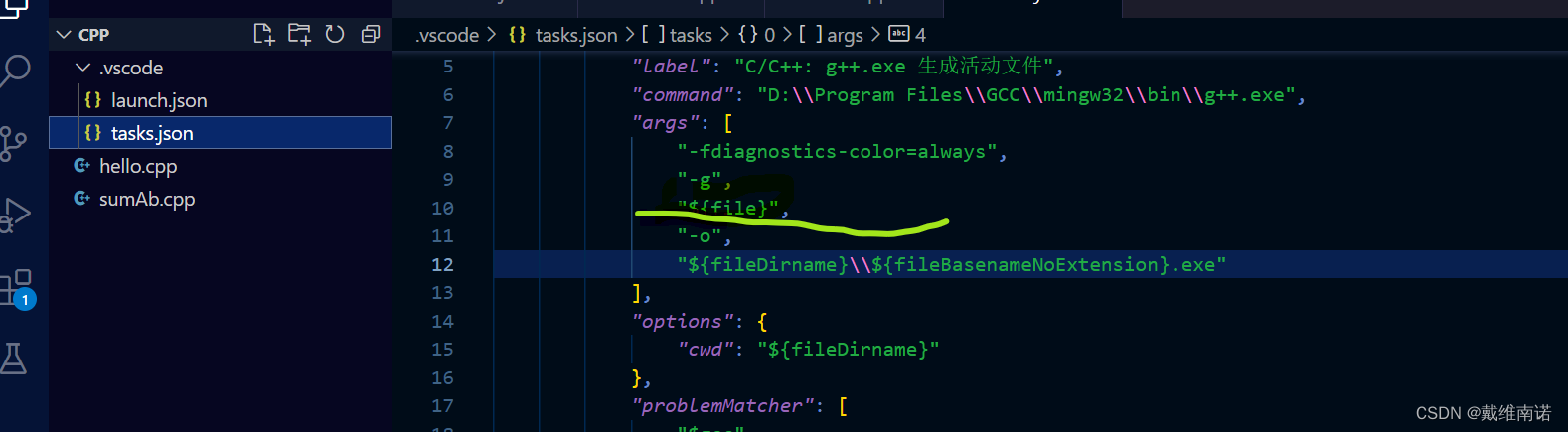 报错,找到左边的.vscode文件,其中有一个tasks.json文件:
