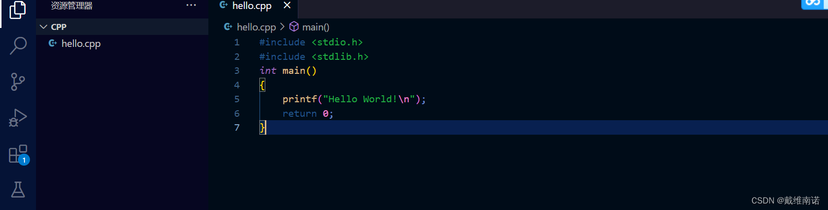 在上面的基础上,我们直接在hello.cpp源文件加入这几行代码: