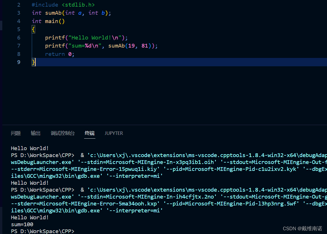 编译运行:按键盘F5