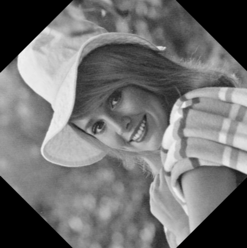 {cv::Mat src = cv::imread("123.jpg");cv::Mat dst;//旋转角度double angle = 45;cv::Size src_sz = src.size();cv::Size dst_sz(src_sz.height*4, src_sz.width*4);int len = std::max(src.cols, src.rows);//指定旋转中心(图像中点)cv::Point2f center(len / 2., len / 2.);//获取旋转矩阵(2x3矩阵)cv::Mat rot_mat = cv::getRotationMatrix2D(center, angle, 1.0);//getAffineTransform 根据两组点集得到旋转矩阵//根据旋转矩阵进行仿射变换cv::warpAffine(src, dst, rot_mat, dst_sz);//显示旋转效果cv::imshow("image", src);cv::imshow("result", dst);cv::imwrite("dst.png", dst);cv::waitKey(0);}