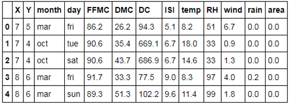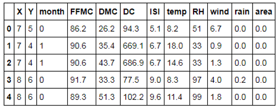 forestfires.month = pd.factorize(forestfires.month)[0]