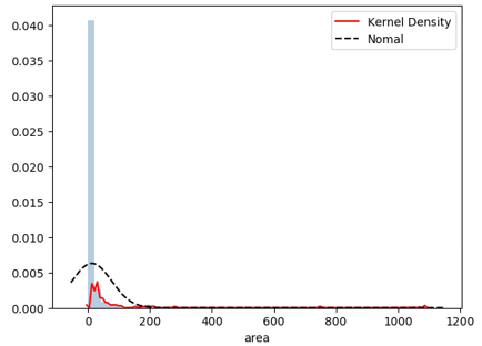 from scipy.stats import norm# 绘制森林烧毁面积的直方图