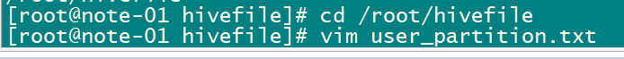 1,首先在虚拟机的note-01的节点(也就是hive服务器所在的Linux电脑上)上创建一个user_partition.txt文件。