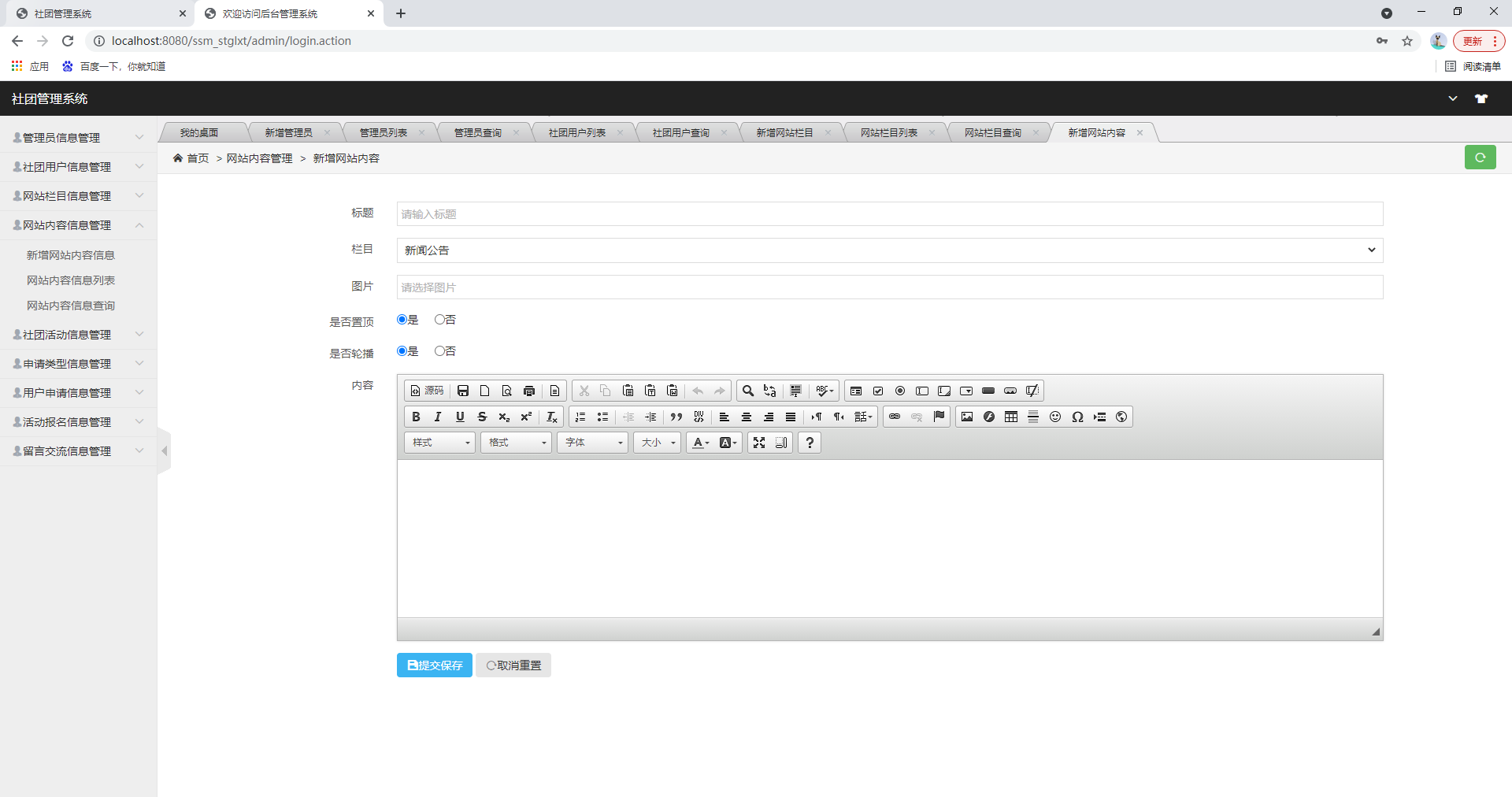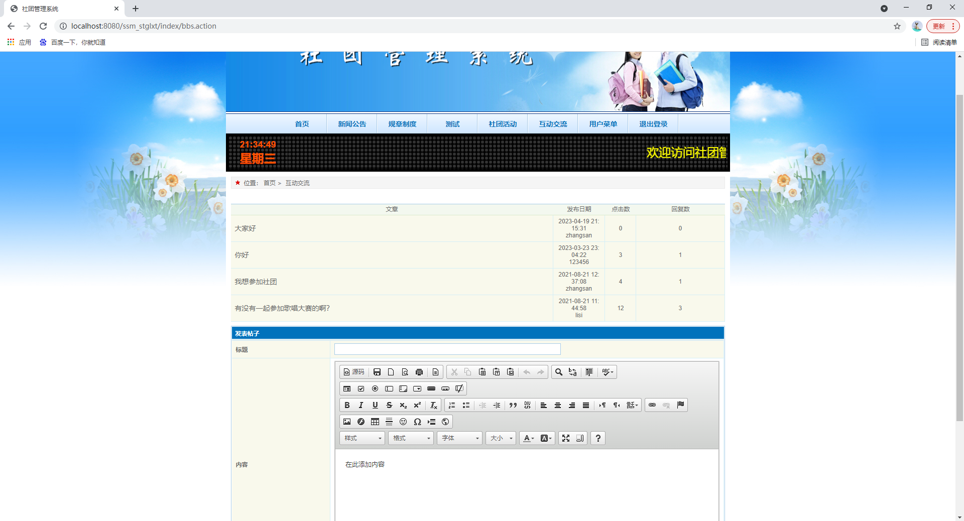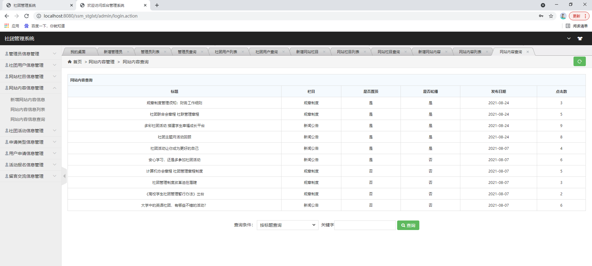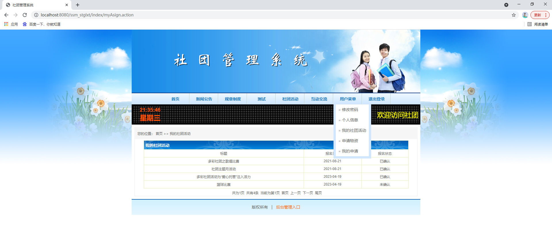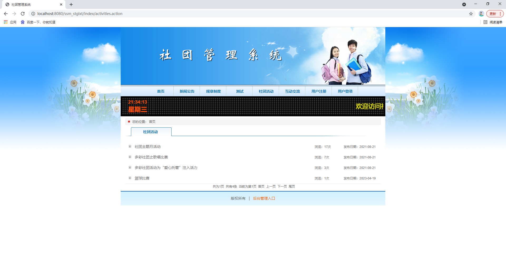 基于ssm的社团管理系统、大学社团管理系统、社团活动管理系统、学生社团管理系统,附源码+数据库,适合课程设计、毕业设计
