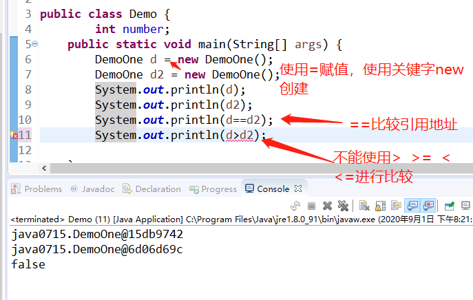 - 引用类型不能使用>、>=、<=、<进行比较;