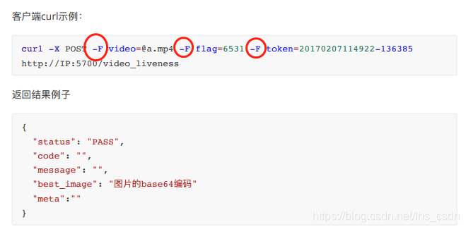 public String videoLiveness(String fileName,String path) {final String remote_url = "http://ip:port/video_liveness";// 第三方服务器请求地址CloseableHttpClient httpClient = HttpClients.createDefault();String result = "";try {File file = new File(path);HttpPost httpPost = new HttpPost(remote_url);MultipartEntityBuilder builder = MultipartEntityBuilder.create();//设置浏览器兼容模式builder.setMode(HttpMultipartMode.BROWSER_COMPATIBLE);//设置请求的编码格式builder.setCharset(Consts.UTF_8); builder.addBinaryBody("video", file, ContentType.MULTIPART_FORM_DATA, fileName);// 文件流