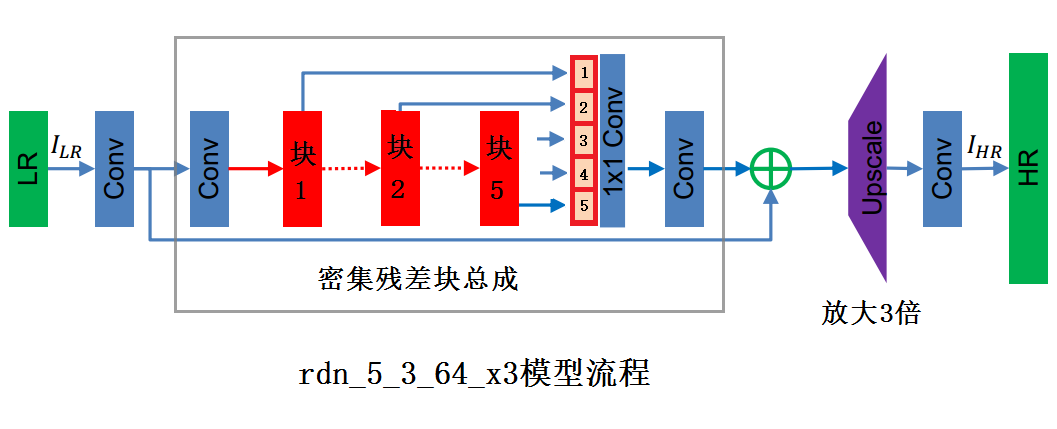 {//浅层特征提取层数据 * conv1;//3->64层数据 * conv2;//64->64//密集残差块int 密集残差块数量;//5块密集残差块 * 块;//5个密集残差块连续存储 320层数据 * conv3; //320-->64 特征融合 1x1卷积层数据 * conv4; //64-->64//全局残差相加//放大层数据 * up1;//64->64 卷积层数据 * up2;//64->32 卷积层数据 * up3;//32->27 卷积//亚像素卷积 27->3//输出层数据 * out;//3->3 卷积//构造函数RDN模型();};RDN模型::RDN模型()