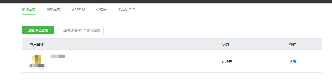首先在微信开放平台注册一个移动应用:https://open.weixin.qq.com/cgi-bin/index?t=home/index&lang=zh_CN